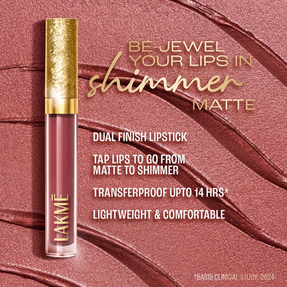 Lakme Be-Jewel Shimmer Lip Liquid with Ceramides, Luminous Matte Finish, Waterproof – 201 Pink Topaz 3.5ml